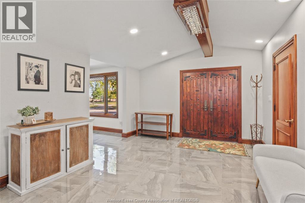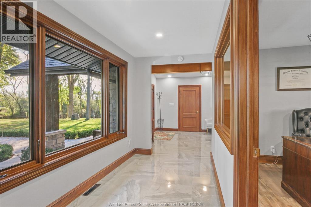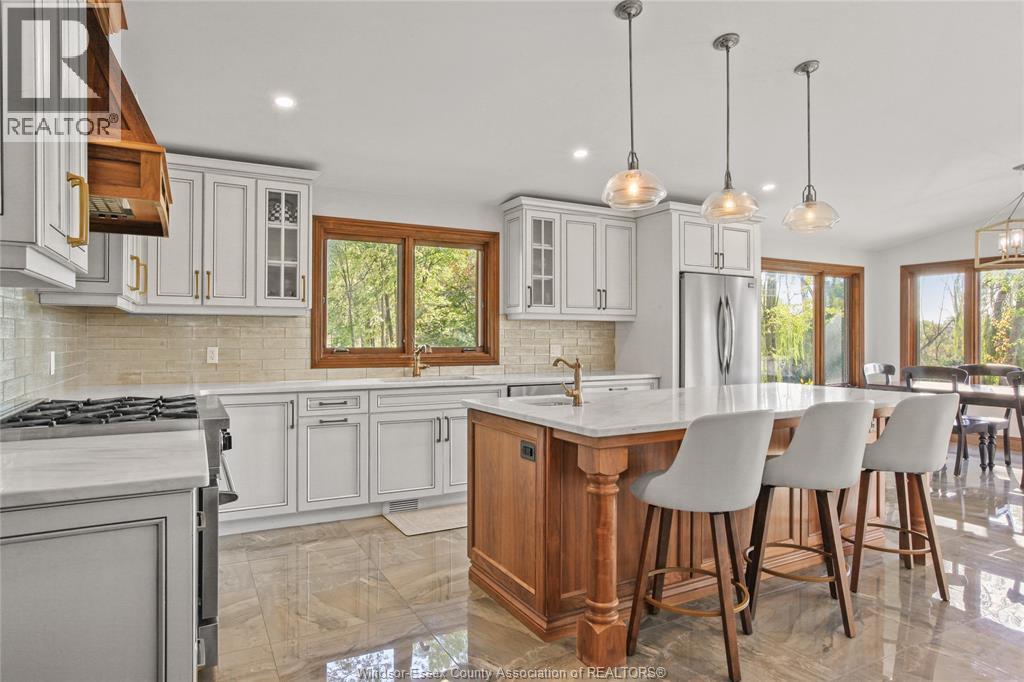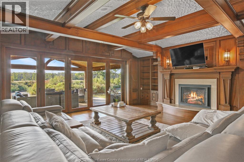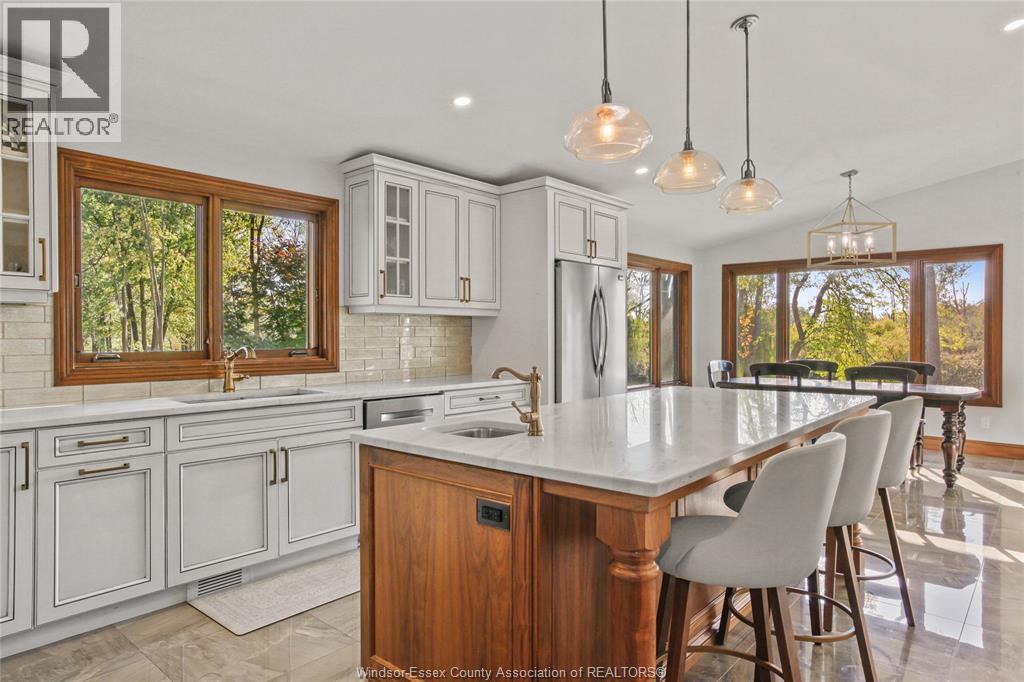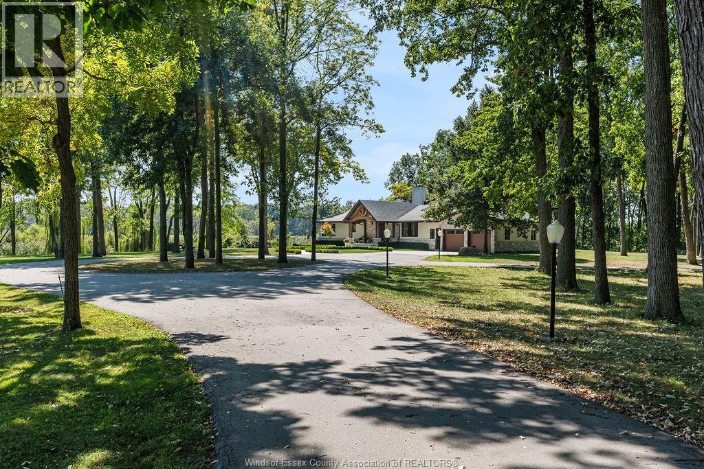 Welcome to an extraordinary 11.5 acre family compound estate, offered for the first time and steeped in heritage and timeless elegance. A tree-lined, gated approach sets the tone for the private, park- like grounds adorned with towering mature trees and navigable waterways protected by steel and concrete breakwalls, leading directly to the Detroit River. The 4+1 bedroom&, 4 bathrooms residence features a spacious primary suite with a walk-out balcony.The main level boasts an updated kitchen, wood paneled family roan warmed by a natural fireplace equipped with bi- fold sliding doors that open the entire room to the covered patio offering stunning views of River Canard. This home is nestled deep within a serene forest setting, blending privacy with prestige. Thia property is located close to schools, golf, and amenities and is short drive to most towns in Windsor-Essex County. Designed for multi-generational living and a luxury lifestyle, this property embodies the essence of legacy. “ALL OFFERS MUST INCLUDE ATTACHED SCHEDULE B” (id:4555)