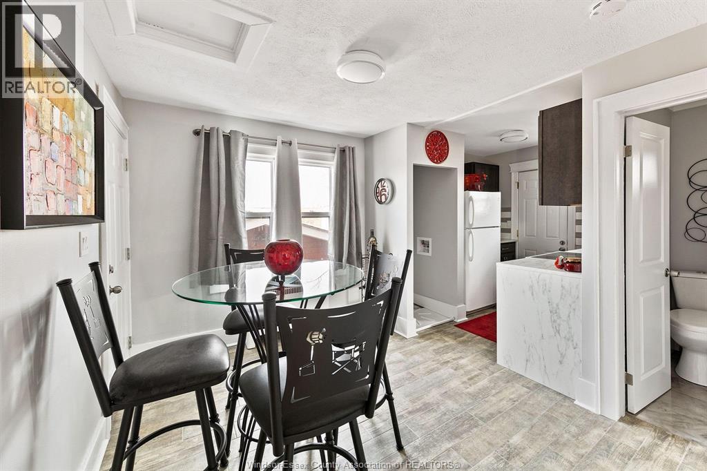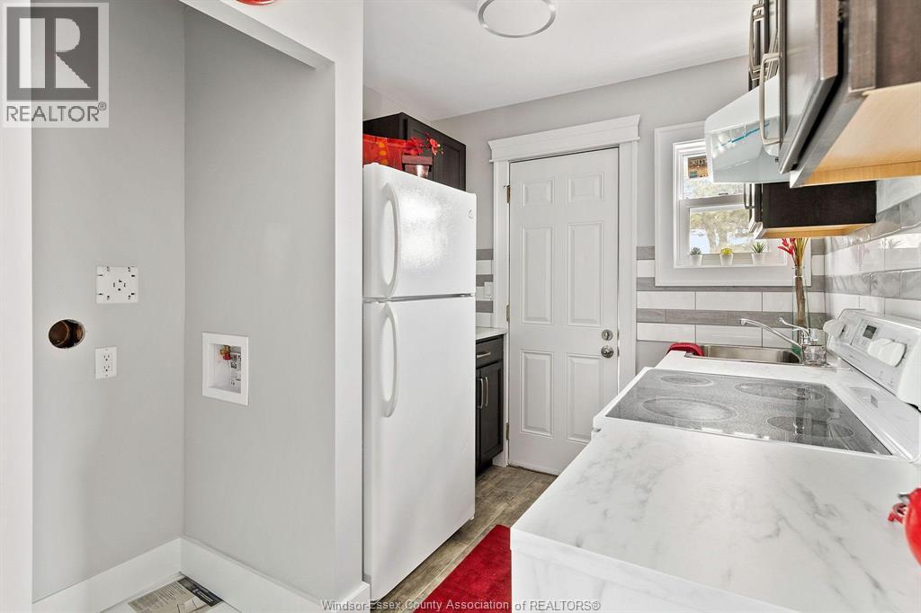 Welcome to this cute and cozy 2-bedroom, 1-bathroom upper unit in central Windsor. Conveniently situated near major amenities and schools, this bright and modern apartment is perfect for comfortable living. Enjoy modern laminate flooring throughout the unit, creating a bright and contemporary atmosphere. The kitchen has a fridge and stove, featuring stunning modern black cabinetry and ample cabinet space for all your culinary needs. Both bedrooms are bright and good size, with the room near the dining area making it perfect for an office space. The modern bathroom boasts marble tiling and a standup shower, combining style and functionality. A back deck overlooks the neighbourhood, providing a perfect spot for relaxation. Located right off Tecumseh Road East, this home is minutes away from Jackson Park, Windsor Stadium, and many shopping centres. Parking is located behind the house. First and last month's rent and full application are required. (id:4555)