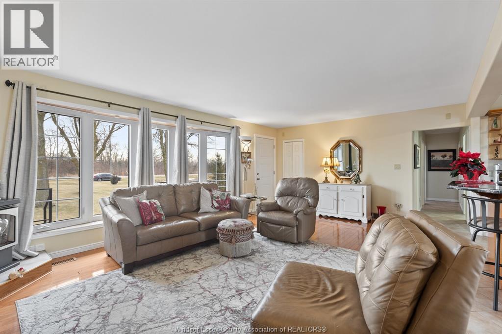 Beautiful brick-to-roof ranch in desirable Amherstburg, set on a generous 100' x 250' lot with no rear neighbours. This spacious 3+1 bedroom home offers an open-concept floorplan ideal for everyday living and entertaining. Enjoy two fireplaces, one on each level, plus a bright sunroom overlooking the private backyard. Features include gas heat and central air (2021), two full baths, and a fully finished basement complete with a wet bar and additional bedroom. Step outside to sun decks at both the front and back, perfect for relaxing or hosting guests. Additional highlights include an attached 2.5 car garage, paved driveway, hot tub included, and shingles updated in 2017. A rare opportunity offering space, privacy, and comfort in a prime location. (id:4555)