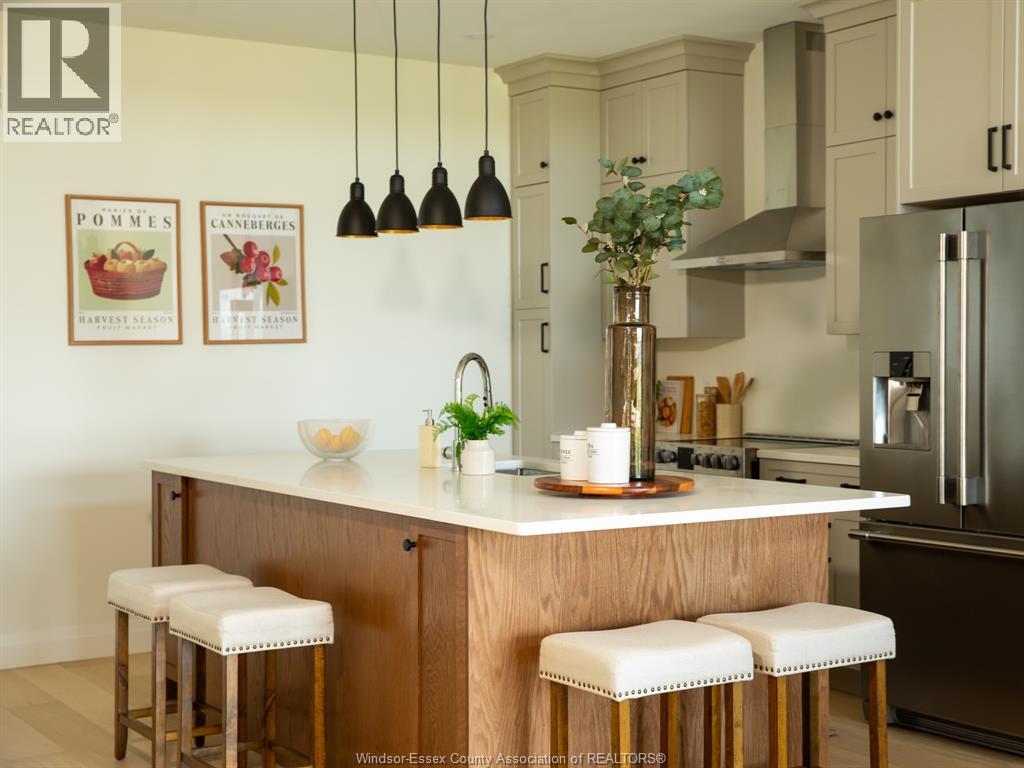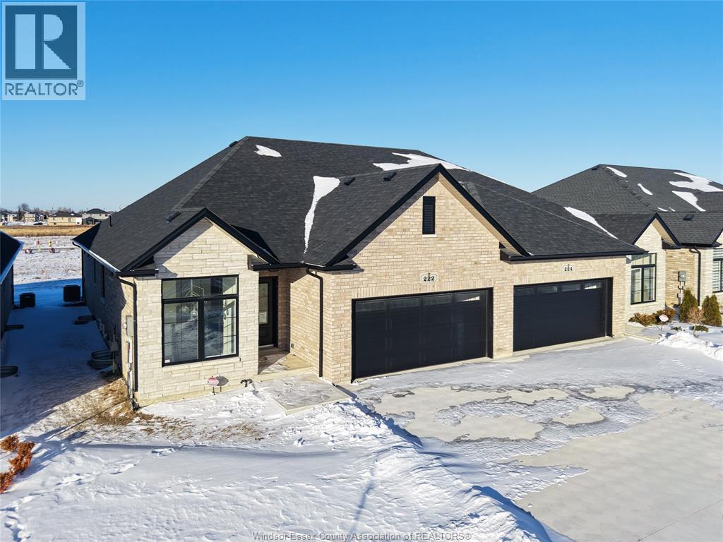 This large, brand new semi detached ranch home is located in one of Amherstburg’s most desirable neighborhoods. Approx. 1550 square feet. Beautifully crafted and never been occupied, it offers refined, modern living throughout. Featuring 2 spacious bedrooms and 2 elegant bathrooms, including a primary suite with private ensuite, plus convenient main floor laundry. The open concept kitchen is designed for both style and function, showcasing a large island, premium cabinetry, and a sophisticated dry bar area ideal for entertaining. Soaring ceilings and expansive windows bathe the home in natural light. Complete with a 2 car garage and a 2 car driveway. Exceptionally built by reputable builder Everjonge, this home is perfectly suited for those seeking luxury, comfort, and low maintenance living. (id:4555)